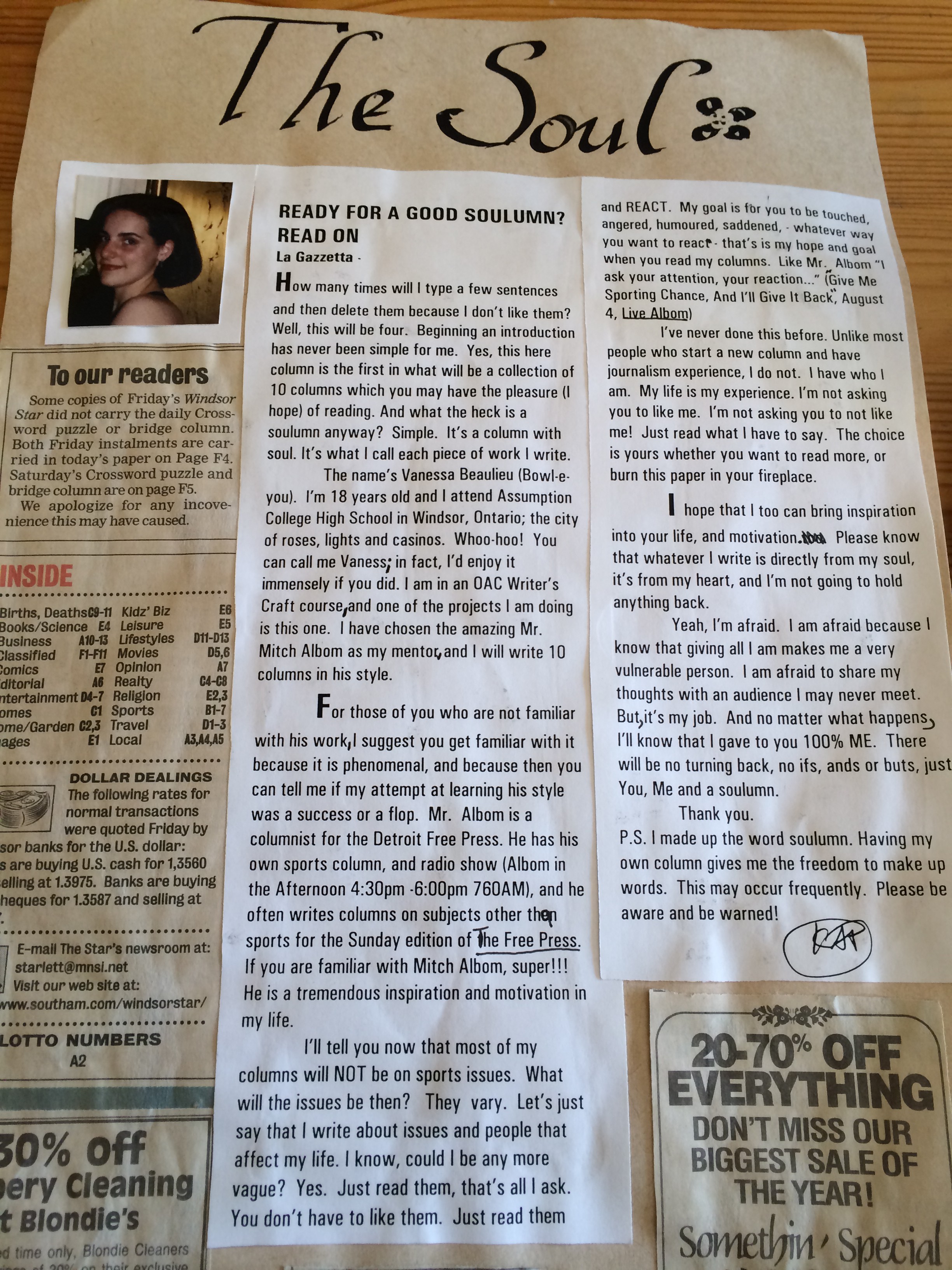Oh, but there’s more. Because Albom was (is!) alive and well, and but a mere skip across the river away, I did what any fearless young writer would do – I called him up and asked him if he’d look over my writing. Didn’t I keel over when I heard the sound of Mitch Albom’s voice on the other end of my landline the night he called to say yes, and by the way, let’s meet in person! I wrote a story about this meeting (see above photo #1). We met at the radio station (WJR). He was kind and humorous. And he meant it when he said he’d get back to me about my writing. I don’t have any evidence of what he said though! I believe he called me again and we talked on the phone.
