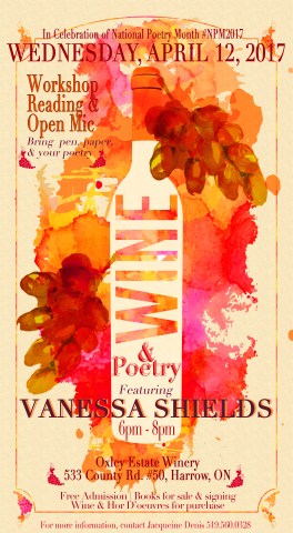 I will be hosting a short workshop and weaving a poetry reading into it at Oxley Estate Winery from 6pm – 8pm. Wine and snacks are available for purchase! And, you can bring your own poetry to read at an open mic and/or read some of what you’ve written during the workshop! Wine and words on the water – oh yes! This is a free event!