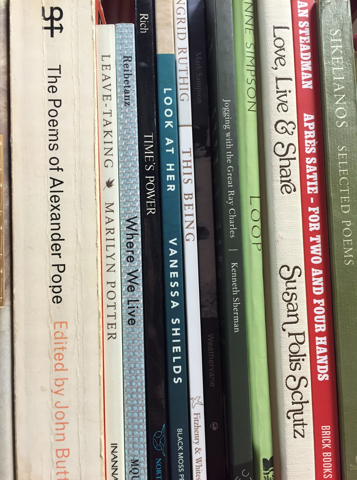 PS. My dear friend sent me a photo of my book on shelf in a bookstore in Toronto. Hazaah! She sent it before my blitz. It was a huge help in motivating myself to write. Thank you Alice! Oh boy, it feels good to be nestled with those other poets…cover to cover.