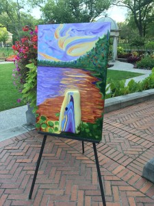 SHO, Spirit & Art held their annual Scattered Ecstasies event in early September. One of my poems was part of the unique artistic event. In the photos below you can see the actor who memorized and performed the poem, and the visual artist who created a painting after reading my poem.