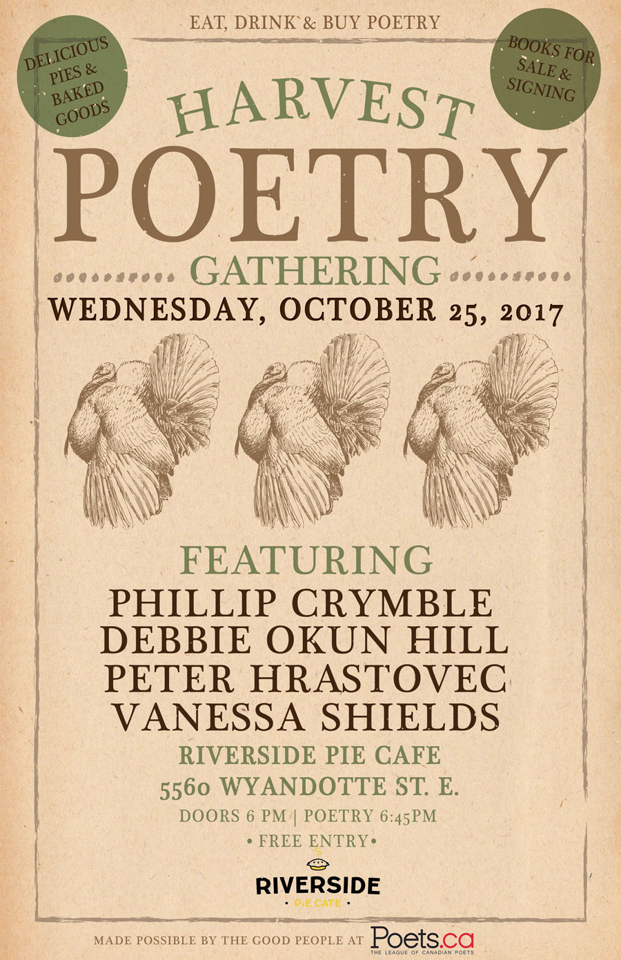 Riverside Pie Cafe, 6:45pm w/ Phillip Crymble, Deb Okun Hill and Peter Hrastovec – and me!