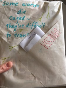 After we read poetry, talked about poetry, learned about the pantoum, then wrote one – we dove into the craft table to make gifts with our poetry!