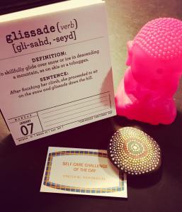 Today’s word is: GLISSADE (VERB) – to skillfully glide over snow or ice in descending a mountain, as on skis or a toboggan.