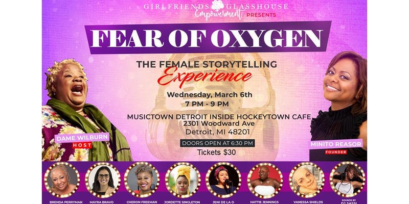 Girlfriend’S Glasshouse Storytelling Event – The Fear of Oxygen. Eight women storytellers share stories of facing fears! Proceeds go toward helping kids get tutored in Detroit. Takes place a Music Town in downtown Detroit. *I’LL BE A STORYTELLER AT THIS WONDERFUL EVENT! 7pm – 9pm