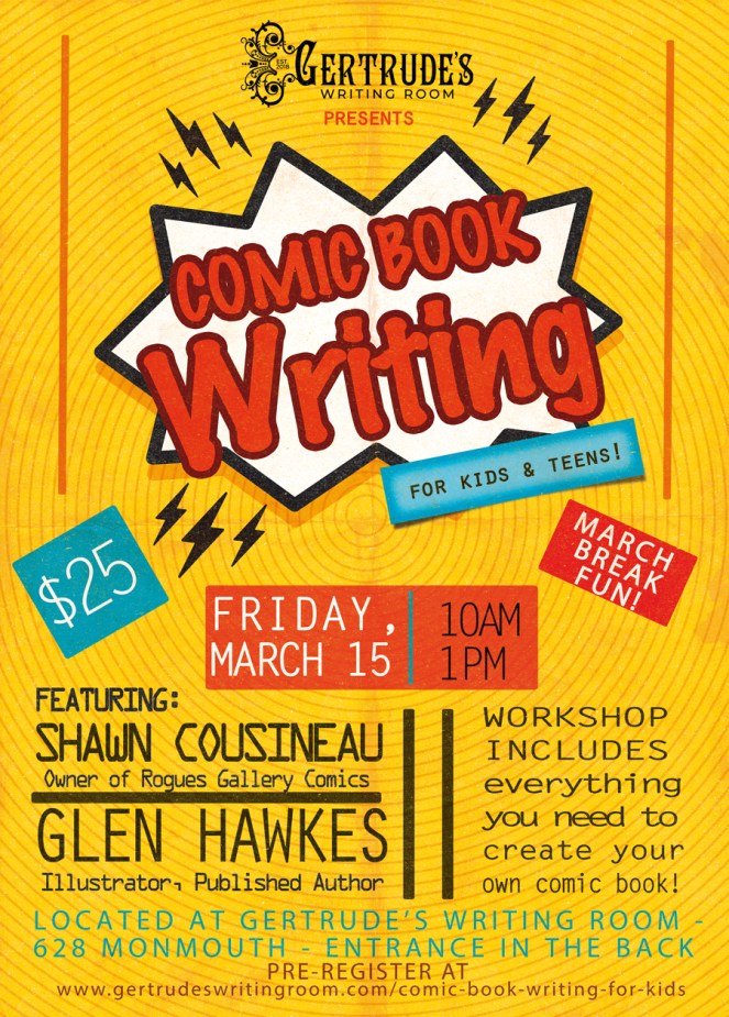 Workshop leader: Shawn Cousinneau (Owner of Rogue Comic Book Gallery) & Glen Hawkes (Comic book writer/illustrator)