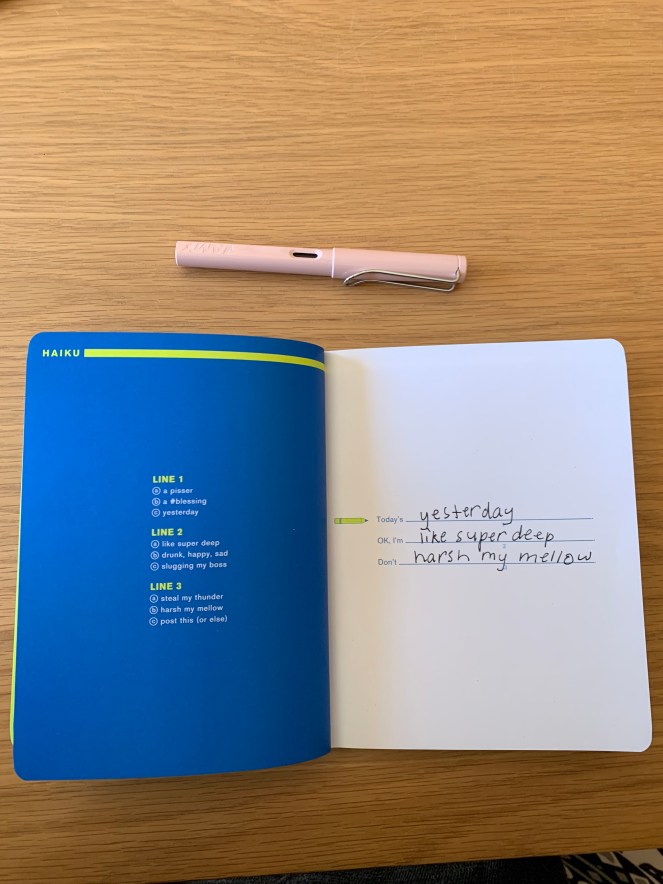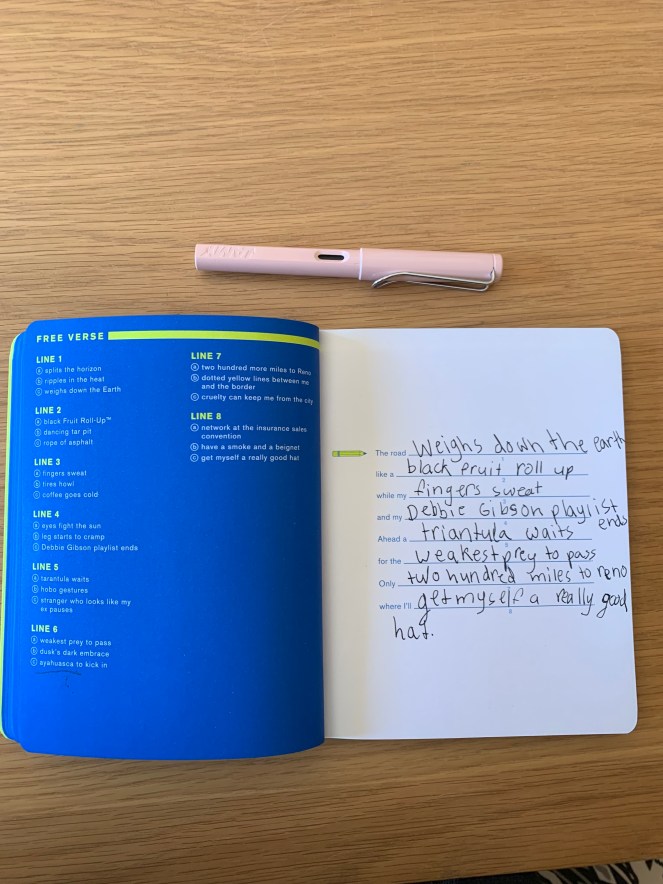 It’s April! April is National Poetry Month. Soooo exciting! Today as part of school for Miller, she worked in a fine little book called Instant Poetry. (Hit up your local bookstore to order it!)