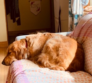 The sun’s rays are like light bands on the back of Pages as she sleeps.