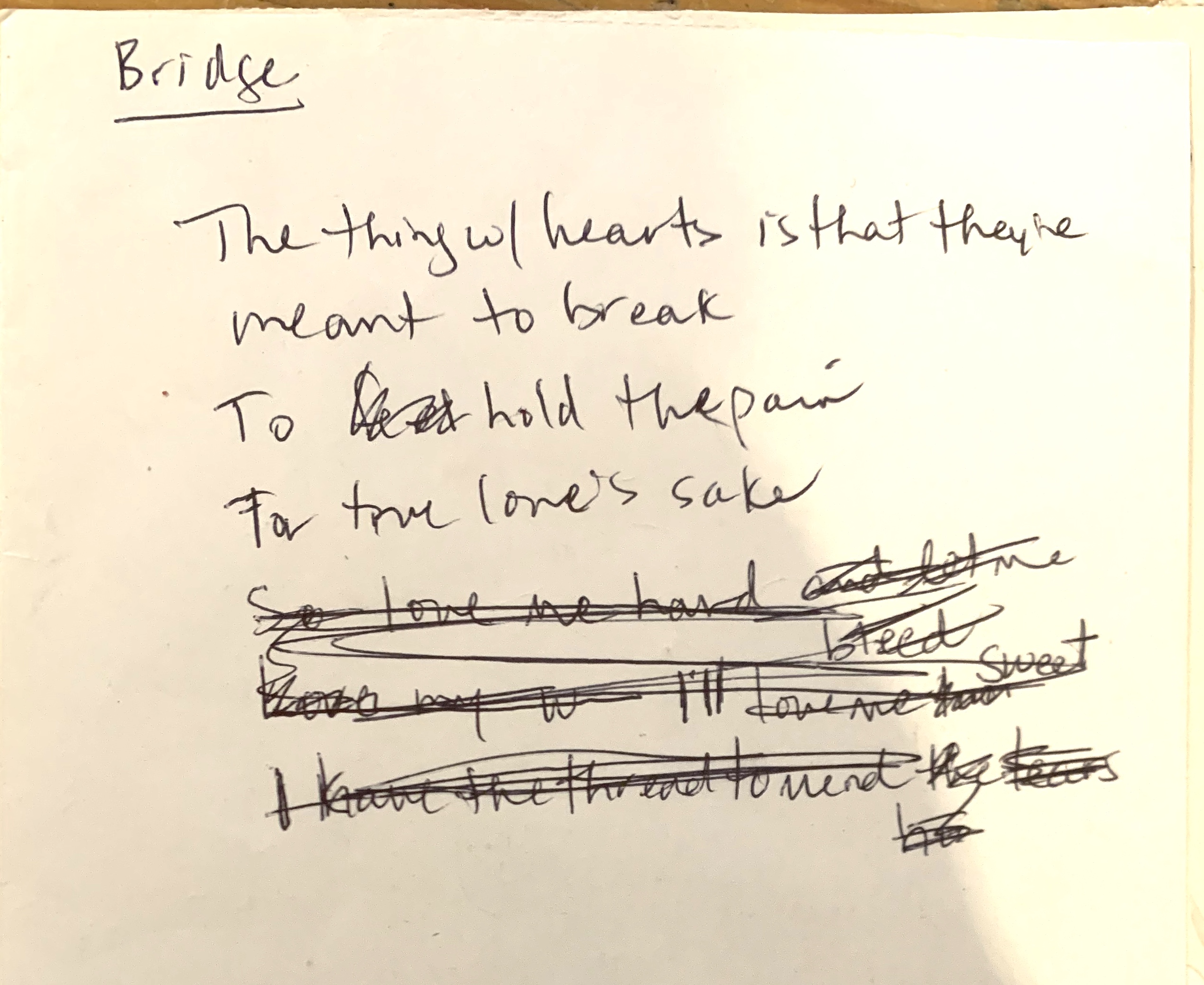 It looks like it might have been the beginning of a song as ‘bridge’ and ‘chorus’ are included…And so, today we get a two-for…a two-fer? Two poems for one because I wanted to revisit this one, but also, I want to keep writing something new each day.