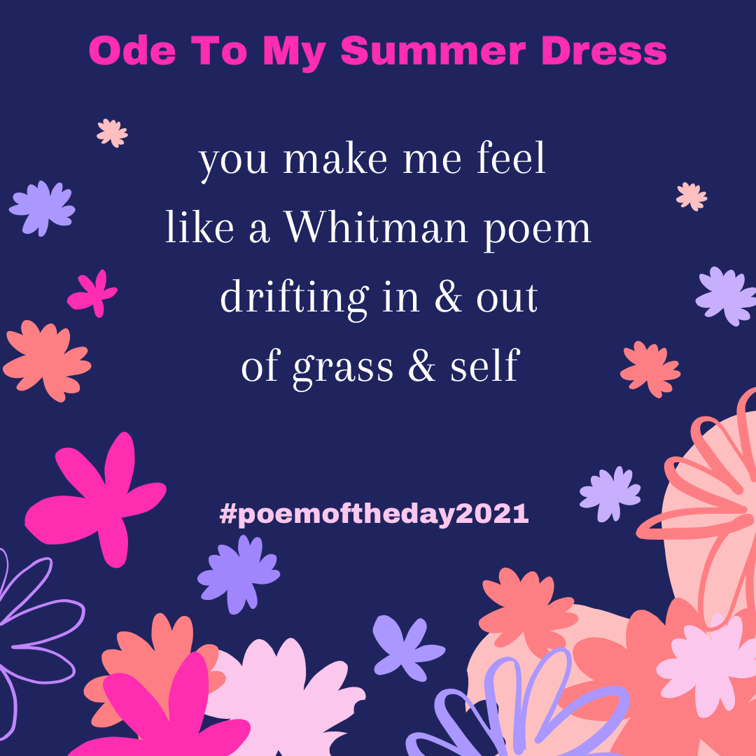 > Vanessa Shields posted: ” Ode To My Summer Dress white dressflowing > gently around my calveslacey love hem &pretty eyelet cleavage cover you > make me feel likeI’m a Whitman poemdrifting in & out of grass & > selfearthing my naked toesin the lumpy lush land” >