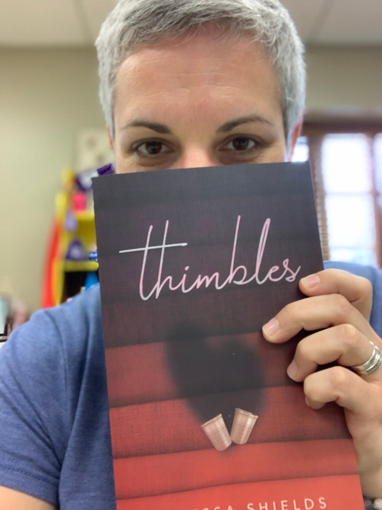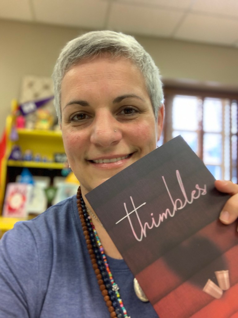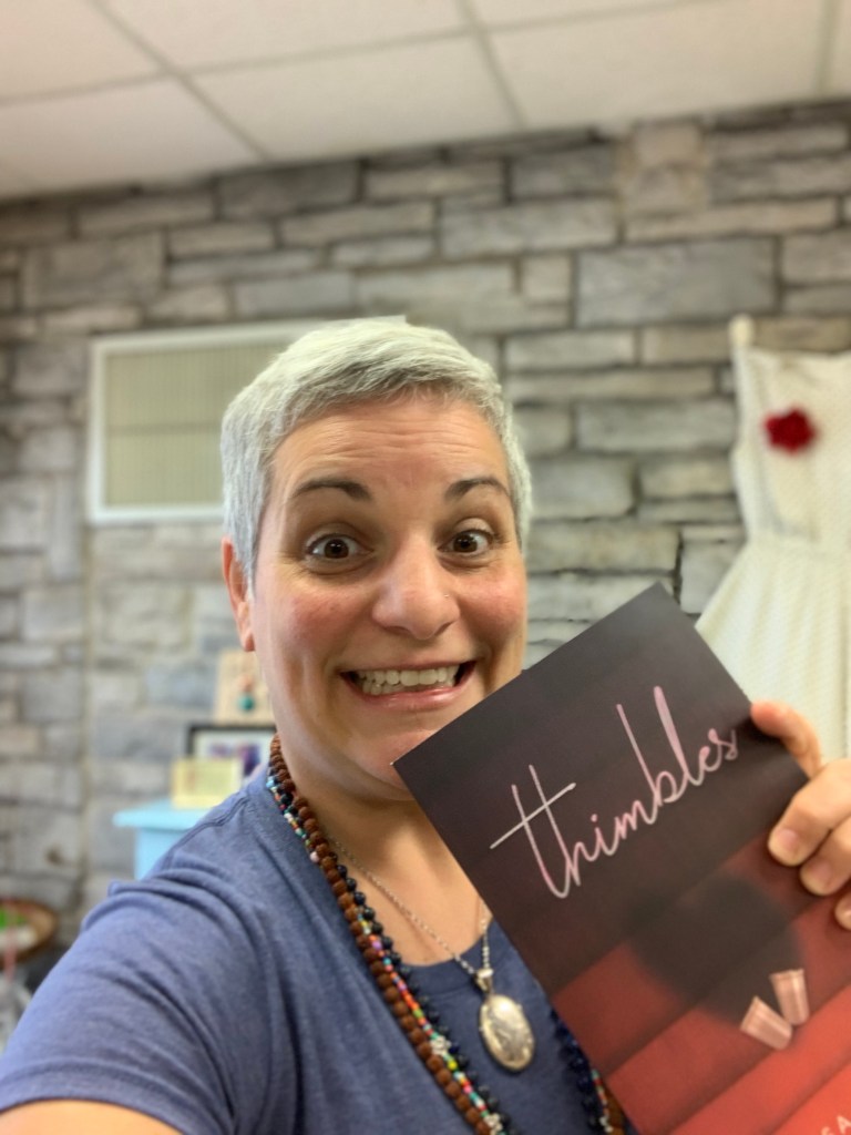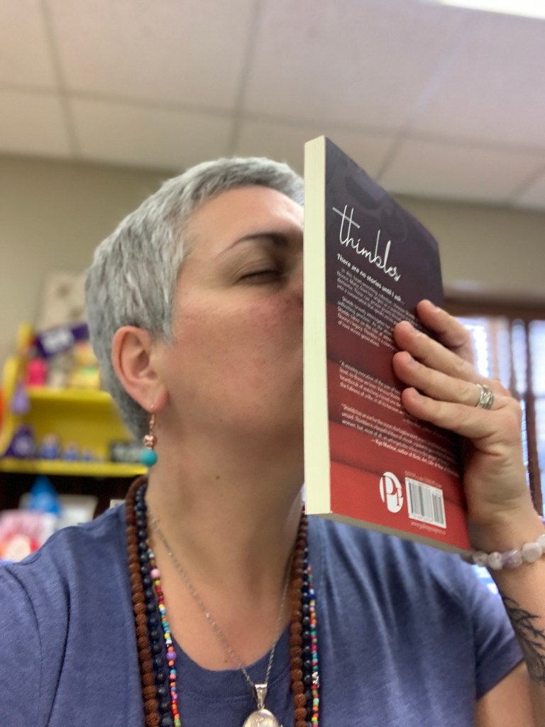 Yesterday was an incredible day! I met my dear publisher Aimee at Gertrude’s Writing Room and we opened a box of ‘thimbles’ books!
