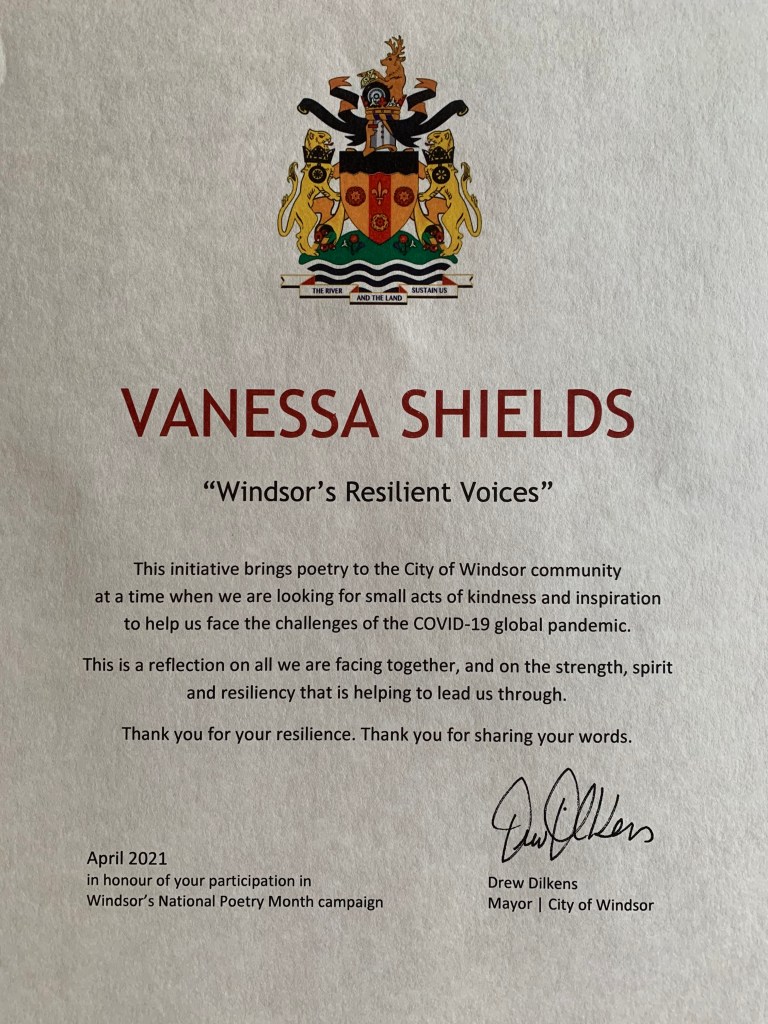 The City of Windsor put out a call to poets to write six-line poems about resilience for National Poetry Month. Poems chosen will be posted in vaccination facilities and on buses throughout the city. Congratulations to the poets whose fine work will now grace our city and offer hope and love to the community.