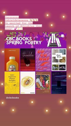 …of being a part of CBC Books Spring 2021 Poetry must-reads list! Thank you to everyone for sending beautiful messages of support and congratulations!