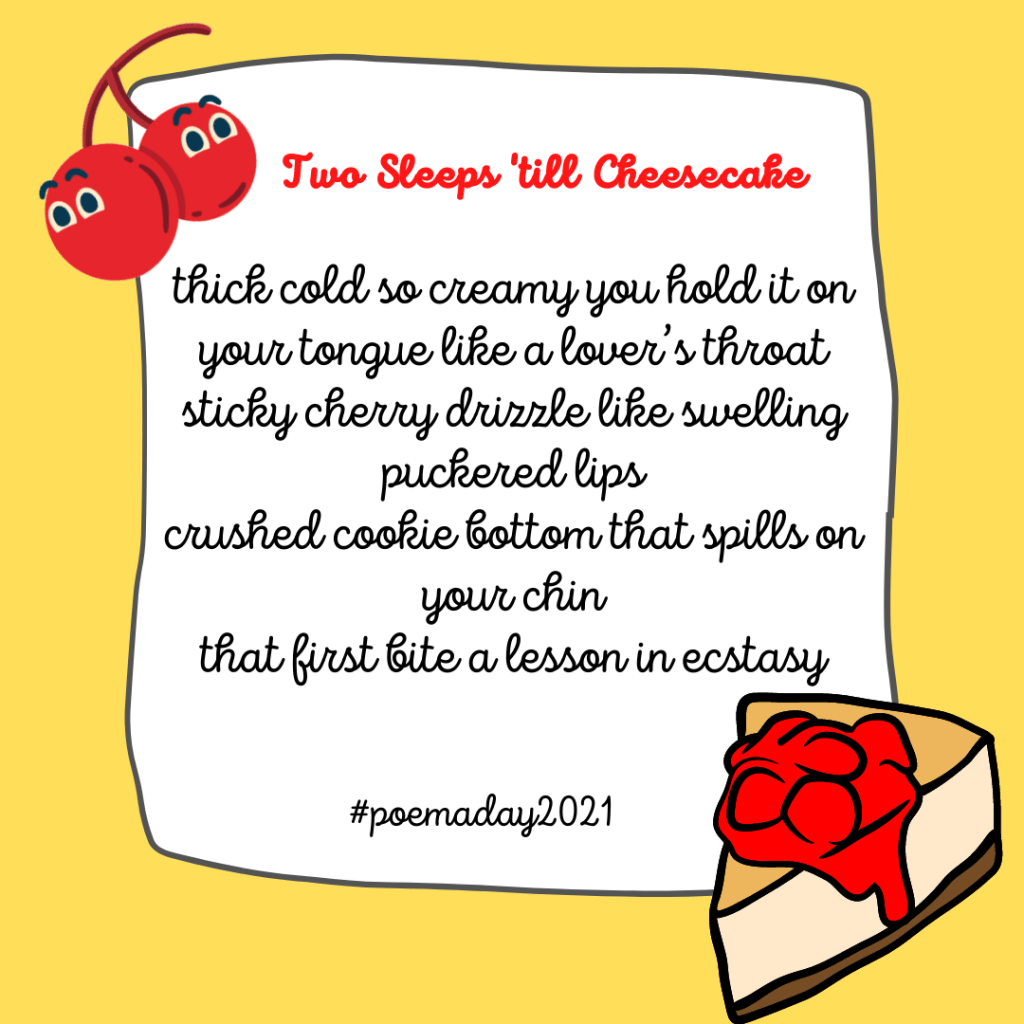 One thought on “Poem 117 – Two Sleeps ’till Cheesecake
