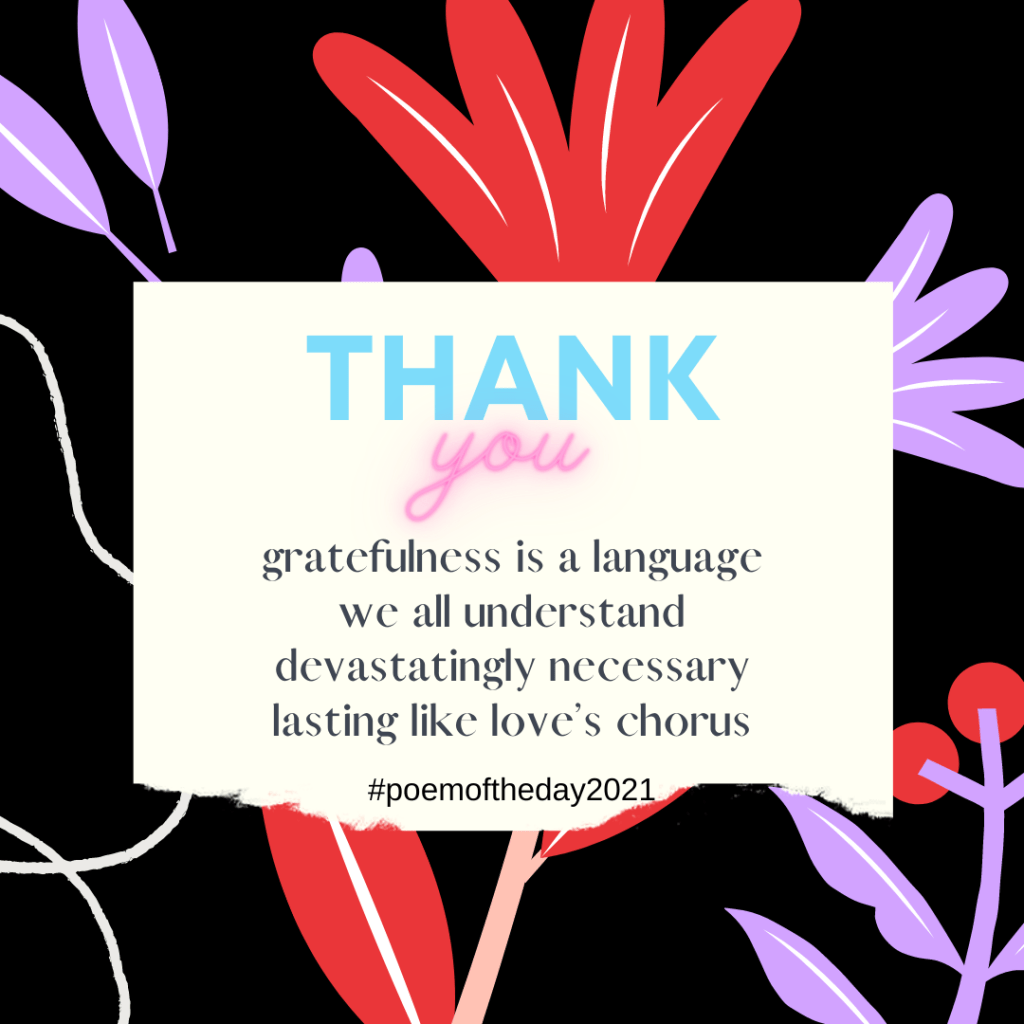Wonderful poem Vanessa! “Thank you”- so meaningful right now!