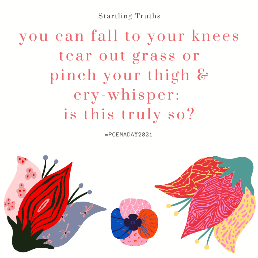 > Vanessa Shields posted: ” Startling Truths you can thinkwhat do I do with > all this truth?as your hands instinctively openpalms up – like it’s > holdable the truth can be startlingan undoing, evenwhen you discover > itsstaggering volume you can fall to your kneestear out gras” >