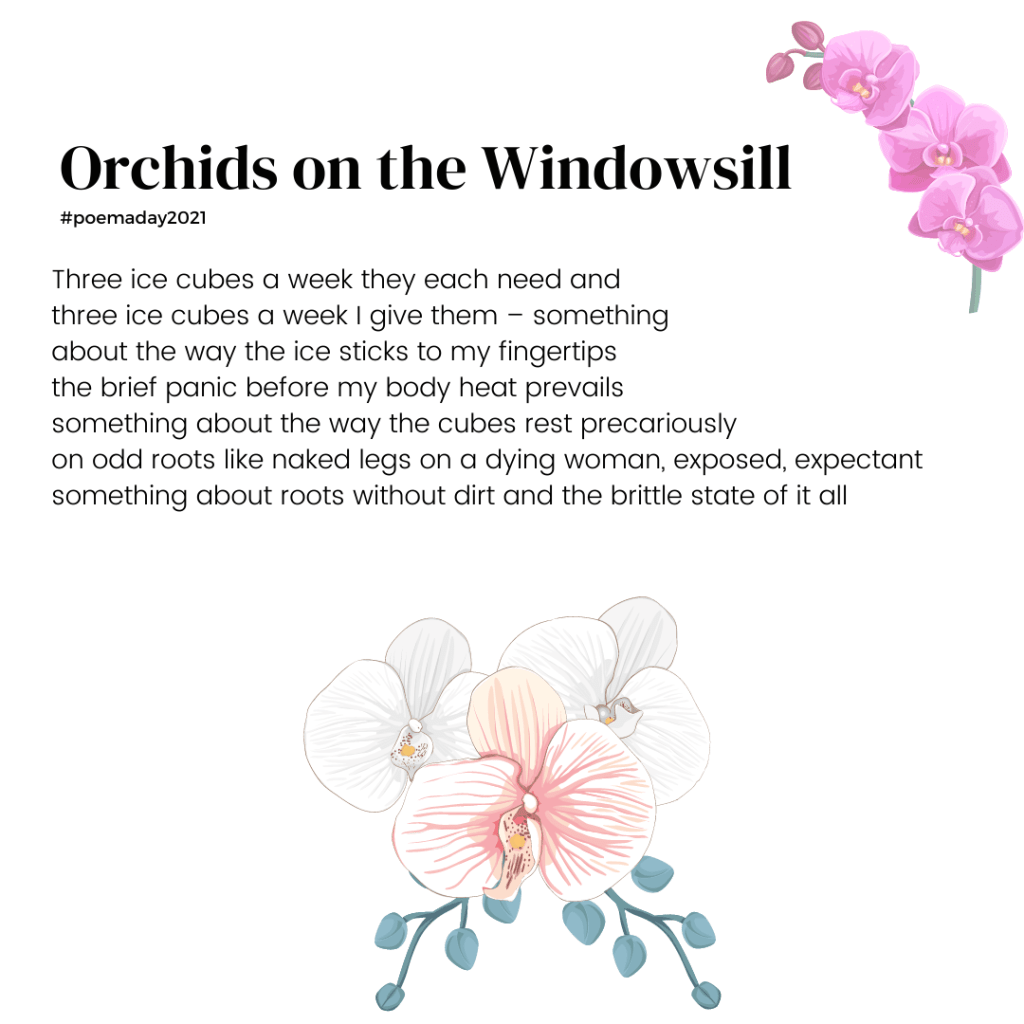 One thought on “Poem 201 – Orchids on the Windowsill & Gertrude’s Writing Room Update!
