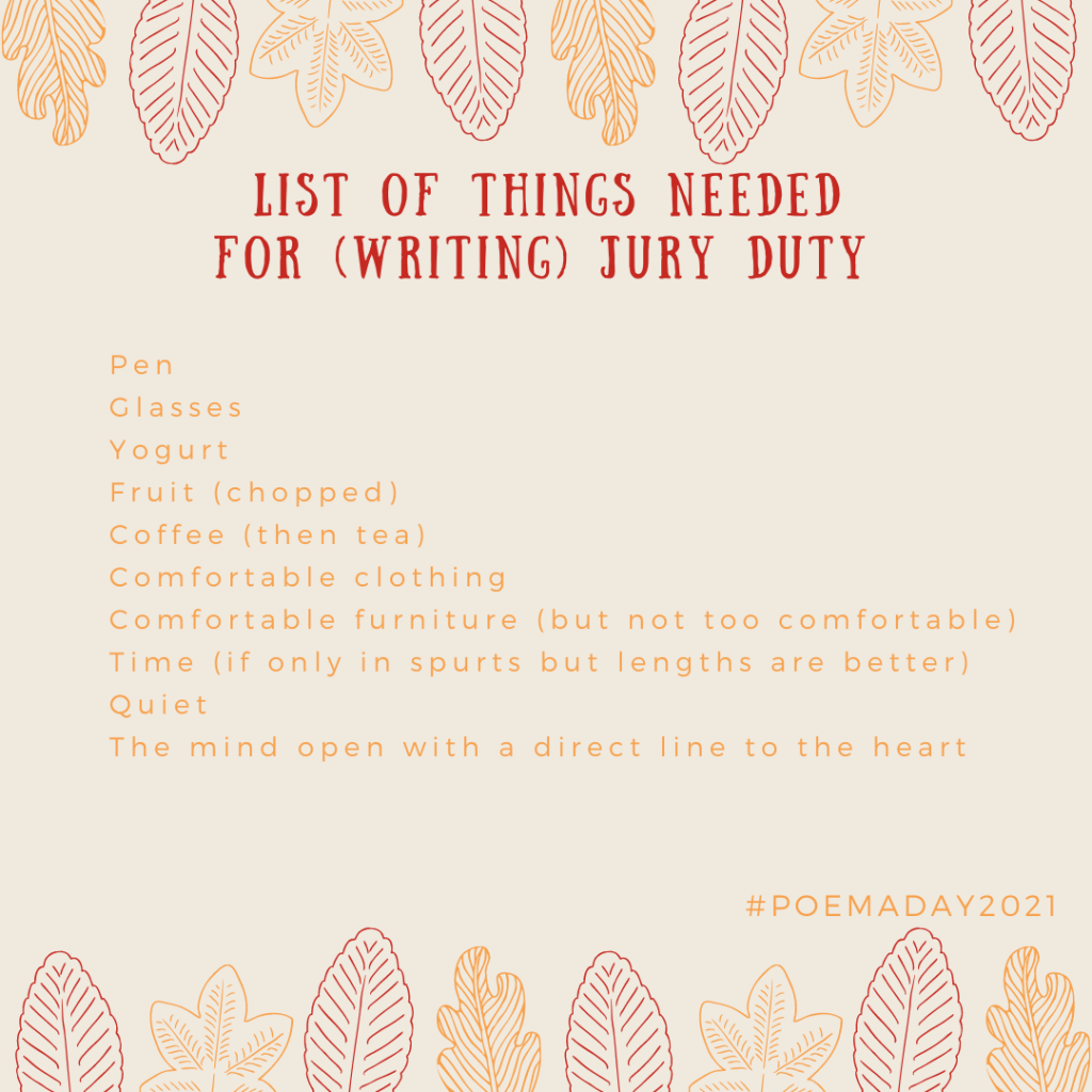 List of Things Needed for (Writing) Jury Duty