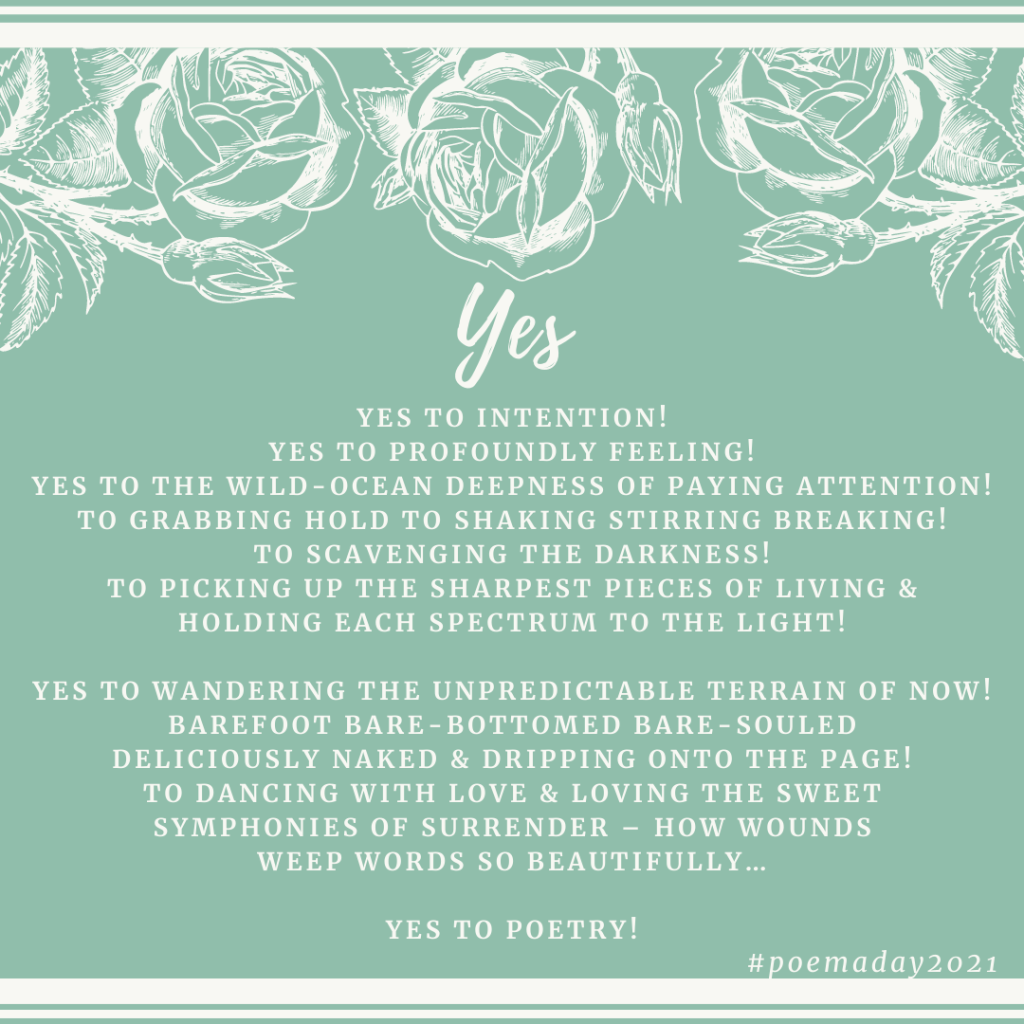 Tomorrow will be my last day of writing a poem a day. What a wild storm of feelings inside my brain! I feel elation and exhaustion equally! I feel…well, proud and inspired. It was harder than I though it would be on some days. On others, it was like letting out a deep sigh. I can see that the poems I’ve written are different…in form and style and voice…that I did a weaving in and out of emotions, weather, nature, reflection, silliness, grief, love, family, contemplation…Some poems lived in my body for days before emerging whilst others slipped off my fingertips so quickly I barely remember writing them…