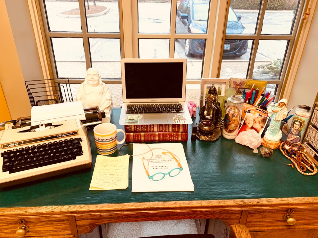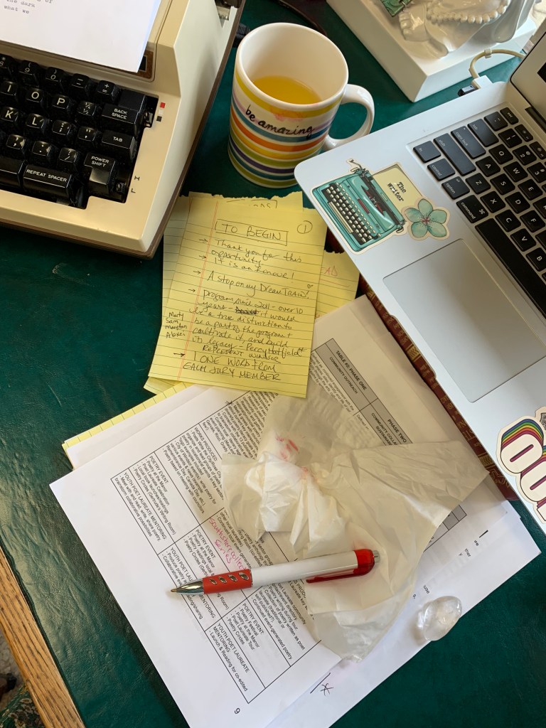 Preparations included writing out my mission statement, my values and believes, choosing what to wear ahead of time, gathering my spiritual totems for the desk, choosing to do poetry on demand and using my favourite typewriter to write the poem, having my notes, key words and application in front of me, and lots of deep breathing.