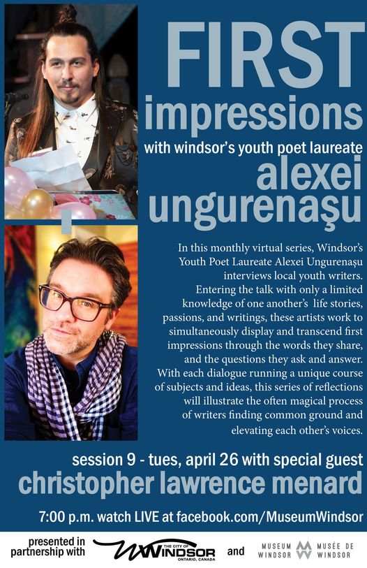 Join Windsor’s Youth Poet Laureate, Alexei Ungurenasu in conversation with Black Moss Press poet Christopher Lawrence Menard.