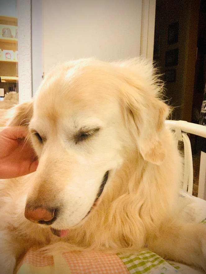 Oscar was the first dog I had from puppy to papa (that’s what we called him). He chose us when we went to see his litter…reaching out with his paw toward the kids. He was born wise, a King stuck in the body of a Golden Retriever. He loved to be adored, constantly pushing his paw in our faces for attention. And though he loved to be kissed, his giving of kisses was a carefully considered occurrence.