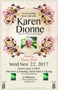 Sunday, October 27, 2024 – Local Author Panel, host, 1pm – 3pm, Balanced Life Wellness Centre, 114 Talbot St. south, Essex, $40. Register ahead! shieldsvanessa@gmail.com