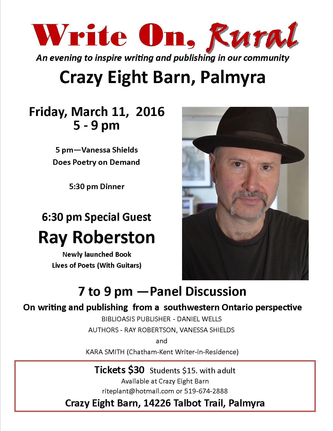 - Friday, February 27 – 28th, 2015 – Poetry Reading in Highgate, ON