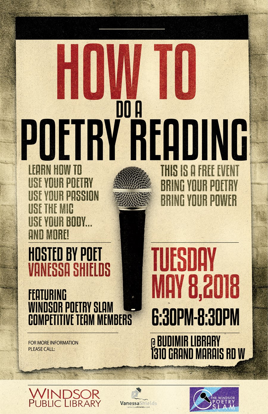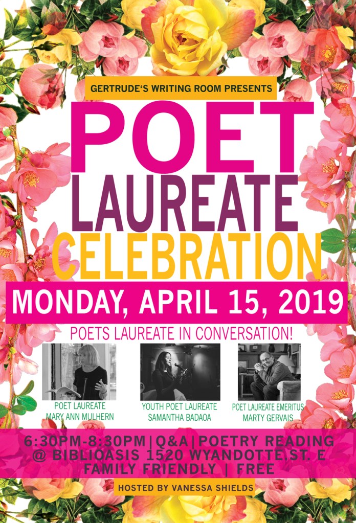 - Sunday, April 12, 2015 – Poetry Reading, Art Gallery of Windsor