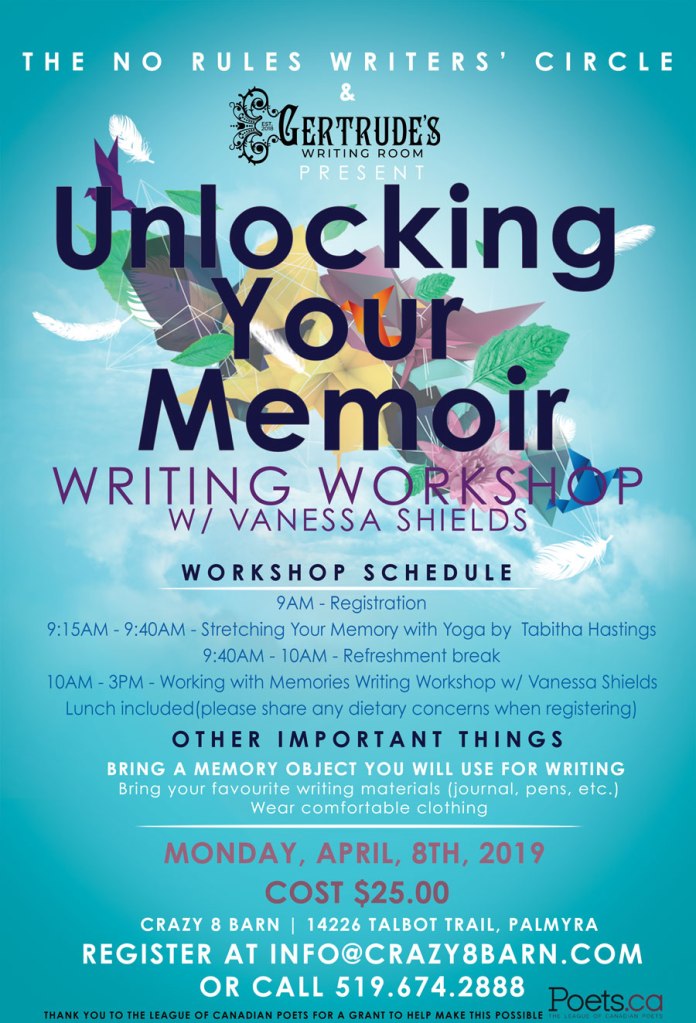 Sunday, November 10, 2024 – Writers’ Assembly Workshop ‘Writing & The Body’ – w/ guest teacher Sharon Singh, 1pm – 4pm, Balanced Life Wellness Centre, 114 Talbot St. south, Essex, $25.00, ReRegister ahead! shieldsvanessa@gmail.com