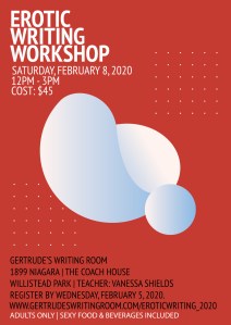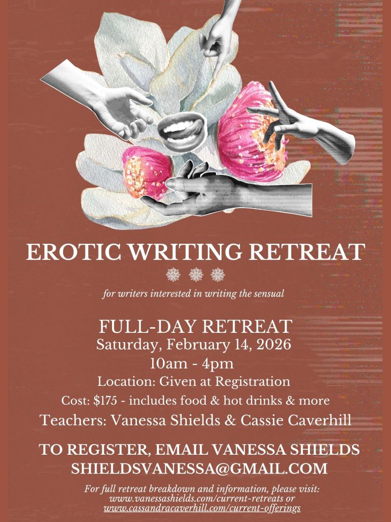 Saturday, February 14, 2026 – Erotic Writing Retreat, 10am – 4pm, Location: Suede Productions, Cost: $175, REGISTRATION IS OPEN! More info here!
