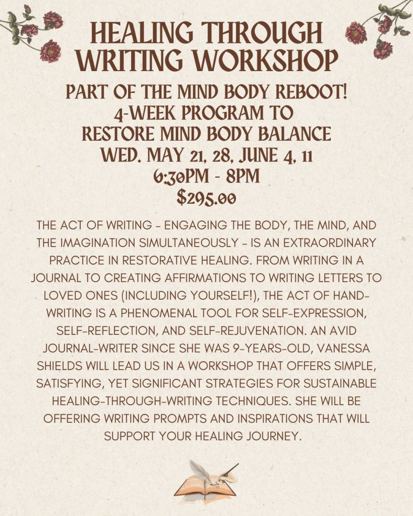 Wednesday, June 4, 2025 – Mind Body Reboot – Healing Through Writing Workshop – 6:30pm, Movement Health