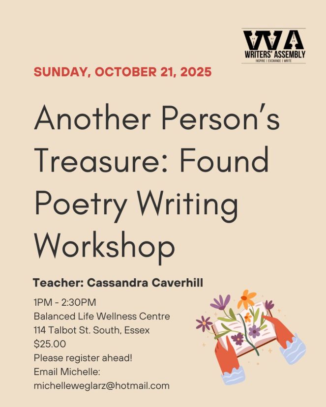 Sunday, October 19, 2025 – Writers’ Assembly Workshop – Poetry Writing Workshop – 1pm-2:30pm, Balanced Life Wellness Centre