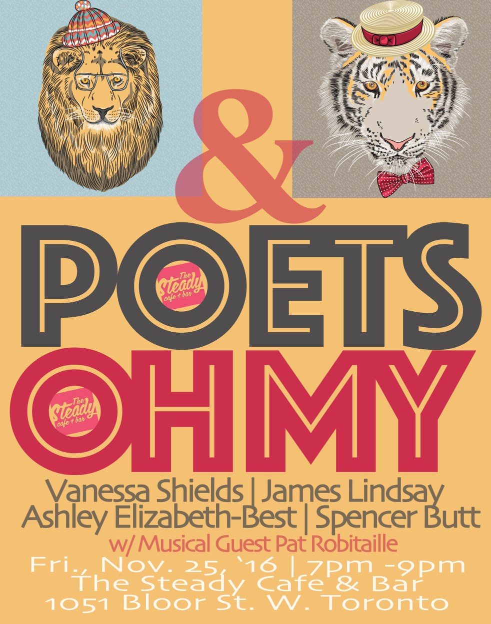 BOOK TOUR - LAST STOP - FRIDAY, NOVEMBER 25, 2016 - 7PM -9PM I can't believe it, but I'm just days away from my last reading for this small but mighty tour! To end this fine journey, I'll be sharing the stage with these beautiful folks at The Steady Cafe in Toronto! We take the… Continue reading BOOK TOUR – LAST STOP – FRI. NOVEMBER 25TH! TORONTO!