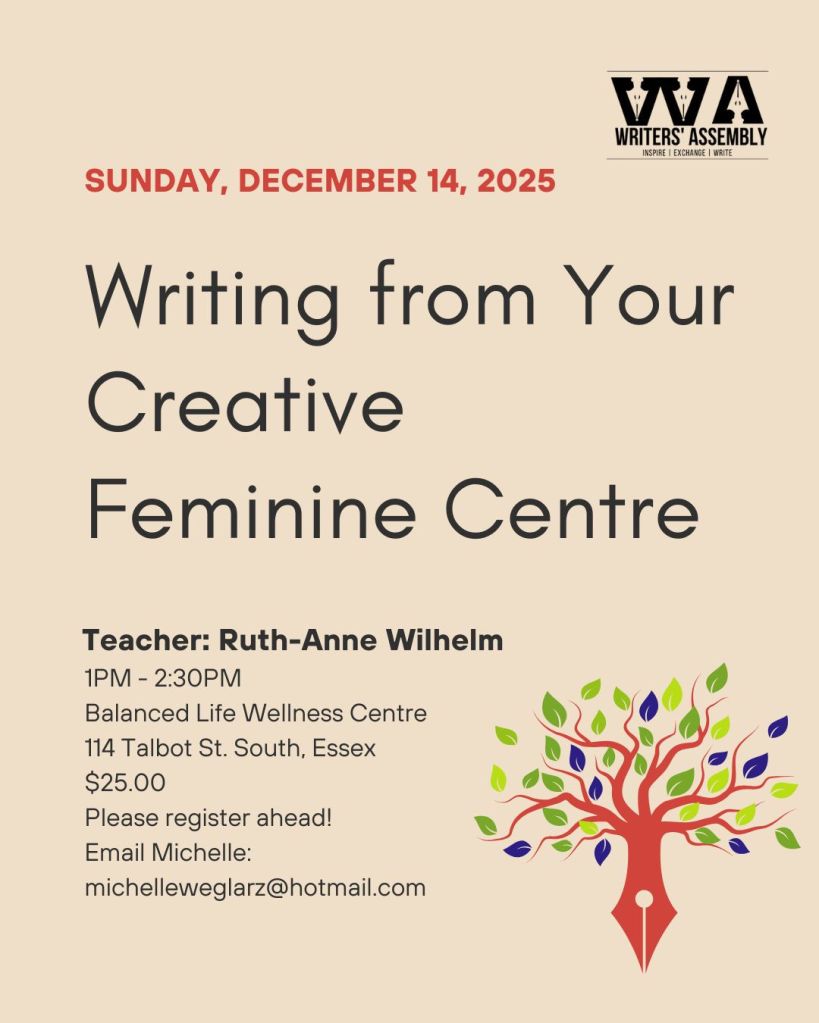 Ruth-Anne Wilhelm has been teaching workshops on the divine feminine for years – and now she’s offering her expertise in a writing workshop! Curious or compelled by this topic, join us as we discover how to create from a feminine centre. All are welcome!